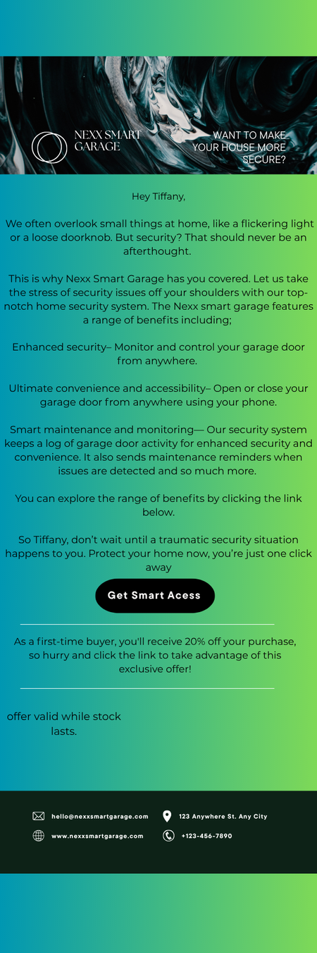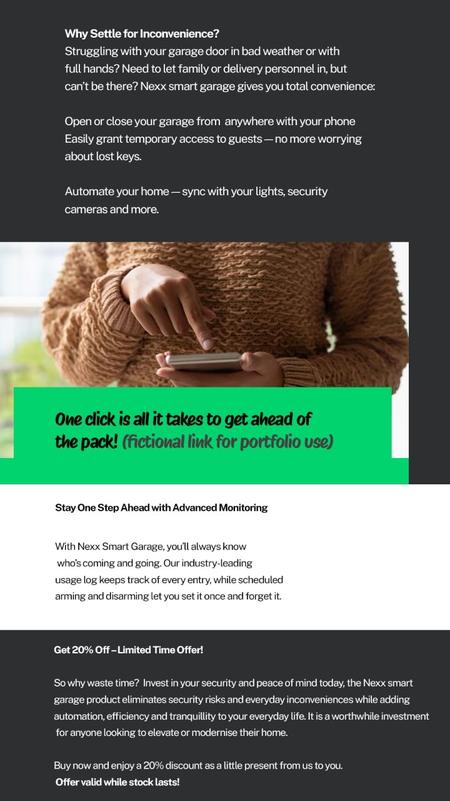 Sales and email copy for Nexx Smart Garage